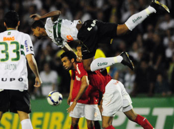 O Inter forçava as jogadas pelo lado direito. O volante Sandro se destacava com bons avanços pelo setor. A equipe de Curitiba tentava escapar nos contra-ataques em velocidade. Aos 38min, Marcelinho Paraíba cobrou falta do lado esquerdo da área e Pereira desviou no meio do caminho com um chute rasteiro para fora. Aos 40min, o meia-atacante cobrou nova falta nas proximidades da área, mas o chute saiu muito forte. Foi o último lance do primeiro tempo.