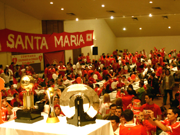 Mais de 600 colorados celebraram o Inter, nesta segunda-feira (05/11), em Santa Maria, região central do Rio Grande do Sul. O evento promovido pelo consulado da cidade, sob o comando do cônsul Edmílson Gabardo, emocionou com os discursos, cantos da torcida, vídeos das grandes conquistas exibidos no telão e a vibrante participação do público.