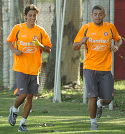 Nilmar (E) e Edinho no treino físico desta terça