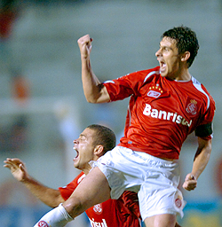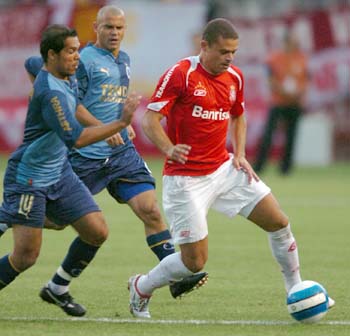 grupo. O técnico Abel Braga escalou uma equipe com três zagueiros, tendo Sidnei como líbero. Jonas e Alex ocuparam as alas, enquanto Roger (foto ao lado), Iarley e Nilmar foram os jogadores mais avançados.