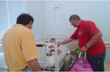 Na oportunidade, os colorados foram recebidos pelo superintendente do Hospital, Arno Berguer, e pelo diretor técnico, Cláudio Waikamp, que agradeceram pelas visitas e doações. Em seguida, a equipe que foi composta pelo cônsul Jarbas S.Vieira, pelo vice-cônsul Paulo Sérgio Barth e pelo representante Paulo César Nunes visitou a unidade de pediatria e entregou a cada um dos internados um brinquedo alusivo ao Dia das Crianças. Também foi realizada a doação de brinquedos pedagógicos para que ficassem à disposição da brinquedoteca do Hospital.