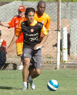 Nilmar treina no campo suplementar: atacante é um das armas do Inter para o jogo do próximo domingo
