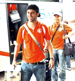 O Internacional chegou a Goiânia por volta das 12h30min desta sexta-feira para a partida diante do Goiás, no domingo, no Estádio Serra Dourada. O vôo até a capital goiana teve escala em Brasília e atrasou cerca de uma hora e meia. Apesar da expectativa de um clima de nervosismo entre os torcedores goianos que lutam para fugir do rebaixamento, a chegada da delegação colorada foi tranqüila no Aeroporto Santa Genoveva.