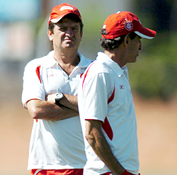Auxiliares Leomir (E) e Robertinho (D): homens de confiança do técnico Abel Braga