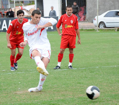 D'Agostin está marcando o segundo gol, de pênalti