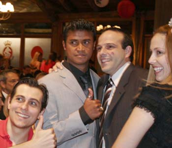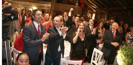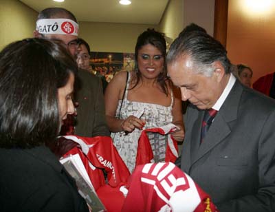 Em meio aos elegantes ternos e vestidos, lá estavam as gloriosas camisas, bandeiras e faixas vermelhas. Elas foram levadas à festa de comemoração pela passagem do primeiro aniversário da conquista do Mundial pelos torcedores colorados, que abrilhantaram a comemoração de um feito do qual tiveram participação essencial.