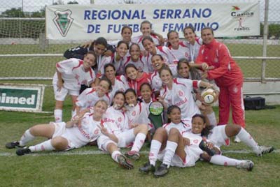 O time feminino do Internacional conquistou o título do Campeonato Serrano no último domingo (16/12), ao golear a equipe do Nova Era por 11 a 0, no Campo A do complexo Beira-Rio. "Esse título vem como um prêmio pela montagem do time em sete dias para a Copa do Brasil", orgulha-se a coordenadora Duda. Os gols foram marcados por Karina (3), Manu (2), Carol, Kamila, Luiza, Liese, Dadá e Mônica. A equipe comandada pelo técnico Evandro Lunardelli já é hexacampeã do estadual, e em 2008 buscará a sétima tação.
