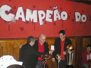 Após as homenagens oficiais, o grupo de torcedores e dirigentes participou de uma recepção comemorativa na Casa Colorada, localizada no Centro de Guaíba. O zagueiro Índio, sempre solícito, posou para diversas fotos junto aos troféus e à torcida colorada. O vice-presidente de Comunicação Social, Gelson Pires, emocionou os presentes ao explanar sobre seu ‘coloradismo’ e a felicidade de estar representando o Inter em Guaíba, sendo aplaudido por todos de pé. Durante seu discurso, Pires solicitou uma salva de palmas ao dirigente guaibense, Sílvio Silveira, e ressaltou o crescimento do consulado do Inter na cidade, entregando uma homenagem especial.