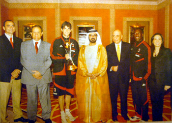 É o grande idealizador da revolução que passa Dubai, onde está sendo construída uma das mais modernas e belas cidades do Oriente Médio. Um verdadeiro paraíso do turismo e dos negócios. Estiveram na recepção também jogadores do Milan, que faz a sua pré-temporada em Dubai, como Seedorf e Kaká.