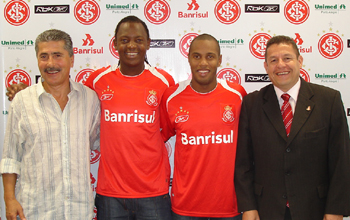 O Internacional contratou o lateral-direito colombiano Rubén Dario Bustos e o meia André Luiz Tavares, o Andrezinho. Destaque do Cúcuta Deportivo na Libertadores 2007, Bustos também é titular da seleção colombiana, tendo marcado de falta o gol da vitória de sua seleção sobre a Argentina. ?Estou muito feliz de vestir essa camiseta. É um clube muito grande e com muita estrutura para o jogador se desenvolver? , afirmou o colombiano.