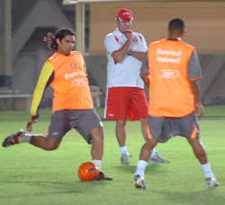 Diante desta estrutura toda, o grupo colorado treinou por volta da 18h30min. Já sem Edinho e Guiñazu que retornaram ao Brasil pra realizar tratamento médico, o time realizou trabalhos físicos no campo suplementar do Estádio Mohamed Bin Zayed, cuja capacidade é de cerca de 20 mil pessoas (obras estão ampliando o estádio pra 40 mil pessoas).