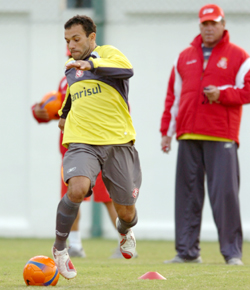 O atacante Iarley participou do coletivo na equipe principal na tarde desta quinta-feira em Abu Dhabi, nos Emirados Árabes. Com a saída do volante Guiñazu, lesionado, o técnico Abel Braga testou uma formação com Iarley e Nilmar no ataque, passando Fernandão para o meio-campo.