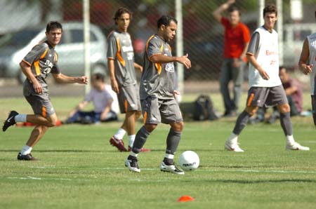 Nilmar (E) treina para enfrentar o Inter-SM