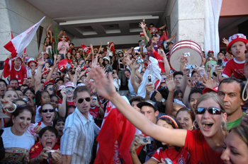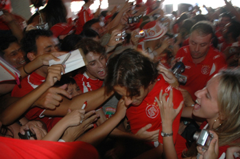 Já nos quartos, os jogadores foram as janelas e acenaram para o público que não arredava pé. Em seguida, porém, todos foram descansar, concentrados para o confronto. O clima de alegria da torcida colorada deverá estar presente também no Estádio Presidente Vargas, neste domingo. A expectativa é de estádio lotado para a estréia no Gauchão.
