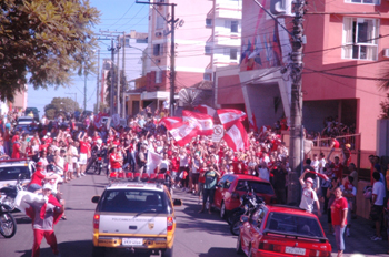 Torcedores pintaram ruas de Santa Maria de vermelho para receber o Inter