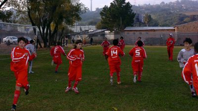 Garotada da Escola Rubra em jogo de inauguração dos novos campos