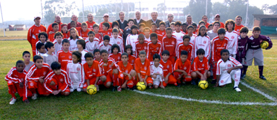 Presidente e direção (ao fundo) colorada prestigia inauguração dos novos campos para os meninos da Escola Rubra