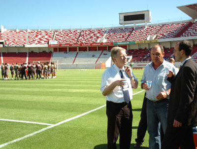 Schairer assistiu a um vídeo mostrando o projeto ´Gigante para sempre`, de reformulação do Complexo Beira-Rio. ?Nós estamos muito impressionados com os planos para as reformas do estádio?, contou o Vice-Prefeito. Após a apresentação do vídeo, Martin Schairer conheceu as Suítes Corporate, a sala de monitoramento, o campo principal e o vestiário da equipe profissional.