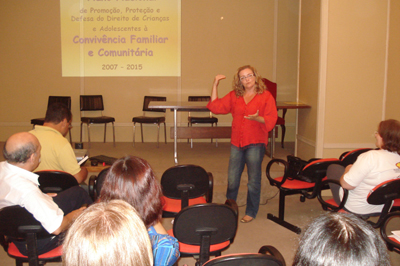 As palestrantes Maria Verônica, do Conselho Estadual dos Direitos da Criança e do Adolescente, e Alice Bittencourt, do GT Nacional da Unicef, falaram aos presentes na reunião. Dentro de suas ações o Saci Colorado tem a formação contínua de sua equipe para garantir a qualidade dos atendimentos junto à rede de escolas e de organizações não-governamentais.