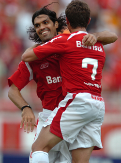 Autores dos dois gols, Fernandão (E) e Alex (D) comemoram em mais uma vitória colorada
