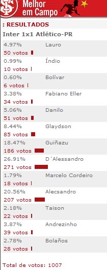 Enquete: D'Alessandro vence enquete do jogo contra Atlético-PR