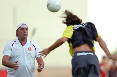 Técnico Abel Braga comanda treinamento de cabeceios do zagueiro Marcão