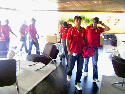 A viagem até Campina Grande, segunda cidade mais populosa da Paraíba, durou cerca de sete horas e foi tranqüila e sem maiores percalços apesar dos mais de 3 mil quilômetros de distância. O vôo teve conexão em São Paulo e escala no Recife. O primeiro treinamento será realizado a partir das 18h em Campina Grande, localizada no agreste paraibano. Na tarde desta terça-feira, haverá mais um treino, o último antes da estréia diante do Nacional.