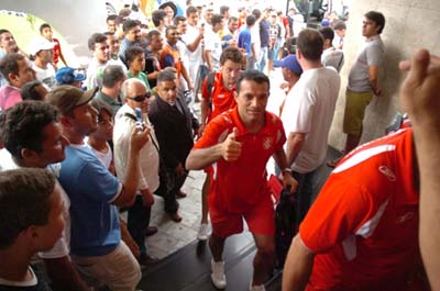O time colorado chegou a Patos por volta das 15h30min depois de uma viagem de cerca de 2h30min. O trajeto entre Campina Grande e Patos foi tranqüilo e na chegada à cidade onde irá enfrentar logo mais o Nacional, até um torcedor com a camisa colorada estava presente. Cerca de 100 pessoas se aglomeraram na frente do Hotel JK onde o grupo ficará concentrado até a hora de ir para o estádio. Os jogadores foram recepcionados com ar de curiosidade por parte dos paraibanos. Alguns pediram autógrafos principalmente para Fernandão e Clemer, os mais saudados.