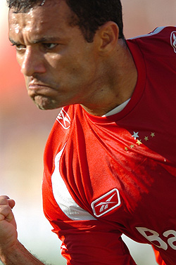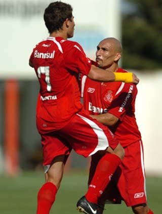 Alex (E) comemora com Guiñazu: Inter conquistou a terceira vitória consecutiva