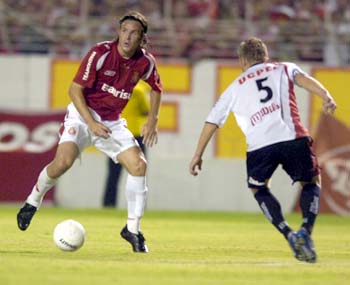 O time colorado tentava tocar a bola e jogar pelas laterais com os avanços de Wellington Monteiro, pela direita, e Marcão e Guiñazu, pela esquerda. Mas o Brasil estava bem fechado, defendia-se com oito jogadores e deixava apenas Cláudio Milar na linha do meio-campo.