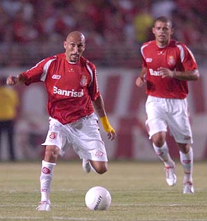 O Inter começou atacando forte. A 2min15seg, uma troca de passes envolvente quase resultou no primeiro gol. Fernandão para Edinho, que deu para Alex, que tocou de primeira para Magrão na área. O volante chutou forte, a bola atravessou a pequena área e sobrou para Wellington Monteiro arrematar por cima, com perigo. O Brasil se fechava com todos os jogadores em seu campo e chegava duro. Como aos 5min, quando Raone entrou com violência em Alex e recebeu o cartão amarelo.
