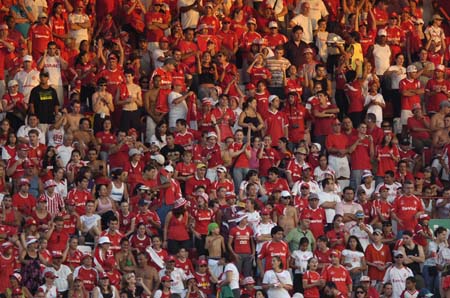 A festa nas arquibancadas seguia linda. Uma ?ola? percorreu todo os 50 mil torcedores colorados presentes no Beira-Rio.