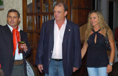 Presidente Vitorio Piffero (C) e sua esposa Constance Piffero (D) recebidos no evento pelo novo Patrão do DTG, Paulo Bellarmino (E)
