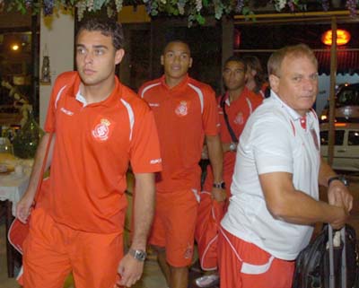 Fora este incidente, a viagem até a Serra foi tranqüila. Os jogadores vieram conversando em alto astral, comentando os lances do treinamento recreativo realizado na tarde no gramado suplementar do Beira-Rio. Na chegada ao hotel, um grupo de cerca de 10 torcedores colorados esperou os atuais campeões da Dubai Cup para tirar fotos e pedir autógrafos. Em seguida, os jogadores foram para seus quartos onde ficarão concentrados até a hora da partida.