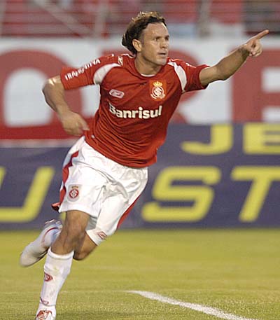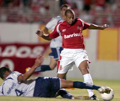 Aos 28min, Fernandão fez uma grande jogada. Recebeu na entrada da área, matou no peito com estilo e concluiu de primeira ao lado do gol. O lance provocou aplausos dos torcedores colorados.