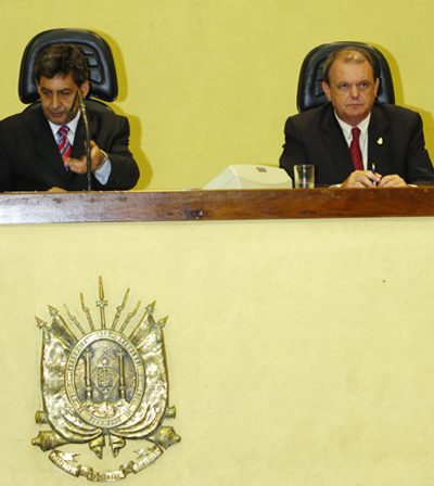 Presidente Vitorio Piffero (D) apresentou o projeto 'Gigante Para Sempre' ao lado do presidente da Câmara de Vereadores Sebastião Melo (E)