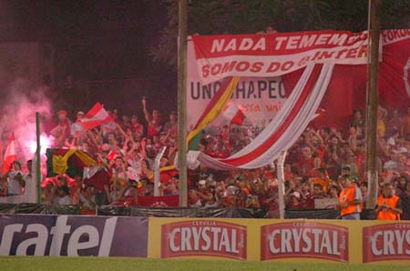 Apesar de 70% do estádio estar vestido de verde, cor da Chapecoense, havia muitos torcedores ?melancias?, ou seja verde por fora e vermelho por dentro. Isso porque muitos torcedores da cidade torcem para o Inter e também para a equipe catarinense, o que aumentava e muito o apoio ao time colorado.