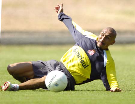 Guiñazu com seu tradicional moleton apesar do calor de mais de 25 graus da manhã desta Sexta-feira de Páscoa: "Sofro no treino para me sentir leve no jogo. É uma mania que tenho há muito tempo", revela o argentino