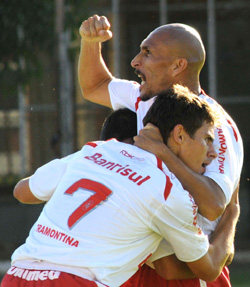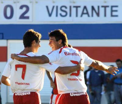Alex (E) comemora com Índio: Inter construiu vantagem em Canoas