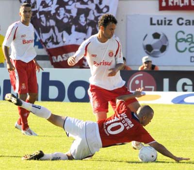 O jogo era equilibrado e com poucas chances de gol. As principais iniciativas partiam de jogadas de bola parada como cobranças de falta e escanteios. O Inter avançava pela direita com Bustos e pela esquerda com Iarley em busca de cruzamentos para Fernandão na área.