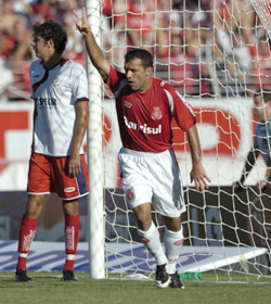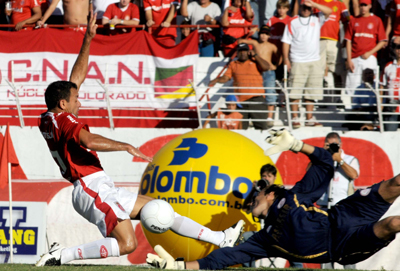 Grande jogada do Inter! Aos 38min25seg, Alex driblou com extrema categoria dois adversários e tocou para Iarley, que chutou para defesa de Rafael para escanteio. O Inter era só pressão. Aos 40min, Guiñazu invadiu a área, driblou o goleiro e tentou a conclusão. A bola ia entrando, mas Neylor salvou em cima da linha. No rebote, Sidnei deu uma bicicleta e quase marcou um golaço. Na seqüência do lance, a zaga aliviou a pressão.