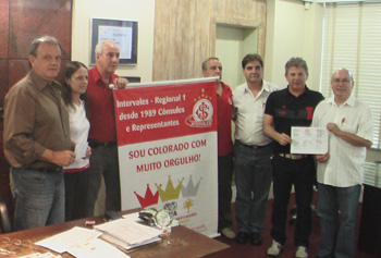 A tarde desta quarta-feira foi marcada por uma grande demonstração de amor ao Internacional. A regional 1 da Intervales, associação de consulados colorados da região do Vale dos Sinos e do Caí, realizou uma doação no valor de R$ 10 mil nominalmente para o Sport Club Internacional, já visando as futuras reformas do estádio Beira-Rio, previstas no projeto Gigante Para Sempre.