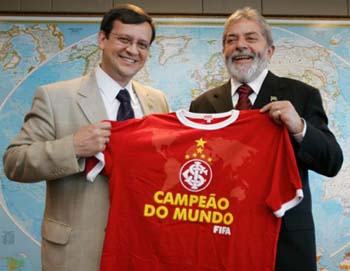 Dep. federal Beto Albuquerque presenteou Lula com uma camiseta alusiva à conquista do Mundial Fifa (Ricardo Stucker/Presidência da República)