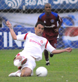 Apesar do jogador a menos, o Inter controlava a partida com boa marcação. A opção ofensiva era a velocidade de Nilmar e Iarley. Aos 40min40seg, Nilmar foi pra cima da defesa e chutou prensado para fora. Um minuto depois, Magrão tocou pra Nilmar, que devolveu para Magrão concluir por cima. O volante, por sinal, se destacava na marcação e aparecia bem no ataque.