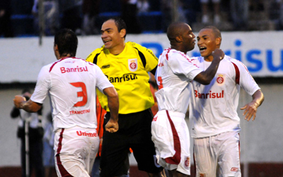 Jogadores colorados comemoraram o gol de Alex que deu a vitória ao Inter na primeira semifinal
