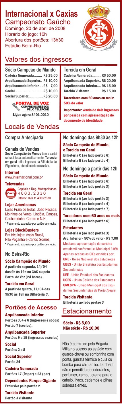 > Saiba tudo sobre a venda de ingressos para Inter x Caxias: