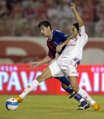 Aos 35min, Bustos cruzou forte e Nilmar entrou de carrinho quase alcançando na pequena área.