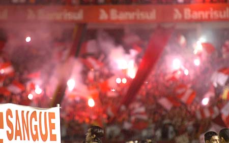 Enquanto uma linda lua cheia começava a aparecer por trás das arquibancadas superiores, os torcedores no estádio começavam a aquecer o caldeirão. ?Vamo, vamo, Inteeeeeer?, cantavam, uma hora antes do jogo.