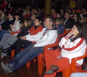 Platéia acompanha com a atenção a exibição do filme sobre a conquista da Dubai Cup