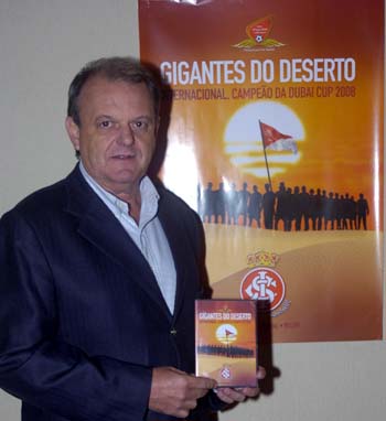 Presidente Vitorio Piffero com o DVD 'Gigantes do Deserto': mais um capítulo da história colorada documentado